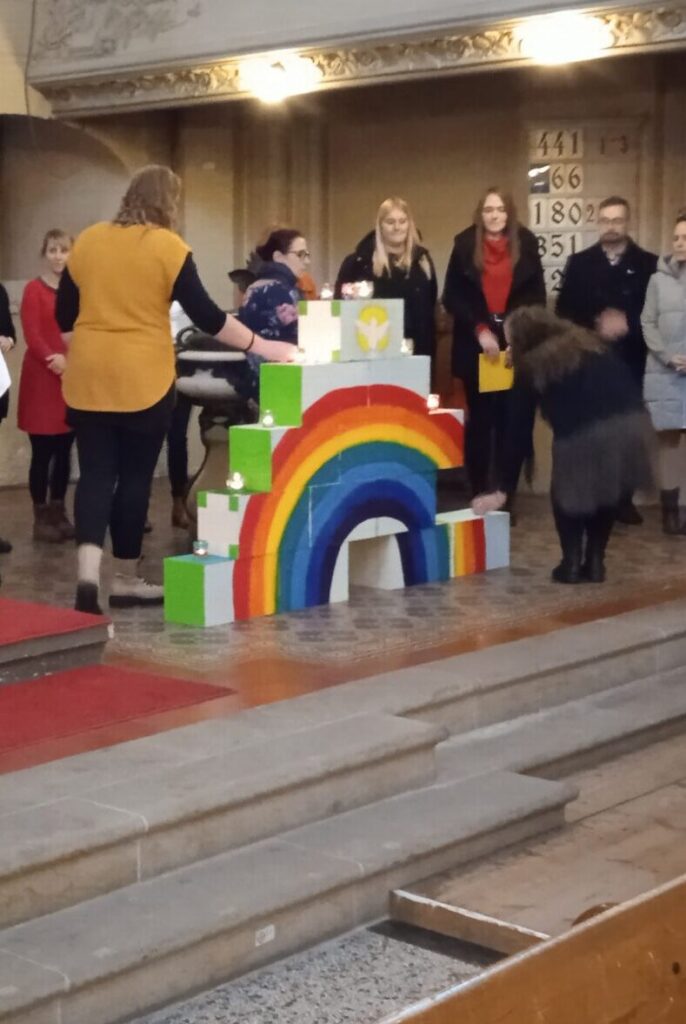 In einem lebendigen und fröhlich-musikalischen Gottesdienst war Raum für einen Rückblick auf das zurückliegende Jahr, in dem sich die Teilnehmenden in zehn Modulen mit theoretischen und praktischen Impulsen auf die Aufgaben der religiösen Bildung in der Kindertageseinrichtung befassten.